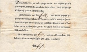Einladung zur Hochzeit von Eberhard Hoesch und Sara Schleicher aus Stolberg (Rhld.) Die Einladung wurde am 21.Oktober 1786 an den Industriellen Johann Wilhelm Schoeller aus Düren versendet.