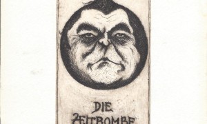 Kleine Zeichnung auf schwerem Büttenpapier der Künstlers H. Sperling aus dem Jahre 1979 mit dem Titel „Die Zeitbombe tickt“. Das Bild zeigt eine Bombe mit dem Bild von Franz-Josef Strauß. Das Bild wurde anläßlich seiner Kanzlerkandidatur für die Bundestagswahl 1980 gezeichnet. Von diesem Bild wurden nur 20 Stück hergestellt. Dieses Bild hat die Nummer 6/20.
