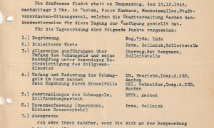 Einladung des Aachener Regierungspräsidenten Ludwig Philipp Lude vom 4.Dezember 1949 zum Thema „Schmuggel im Aachnere Raum“.