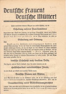 Din- A4 Flugblatt „Deutsche Frauen! Deutsche Mütter!“der Deutschen Volkspartei zur Reichchstagswahl am 04. Mai 1924. Das Flugblatt wurde für die Kandidatin Frau Dr. Anna Mayer (vermutlich aus Berlin) hergestellt.