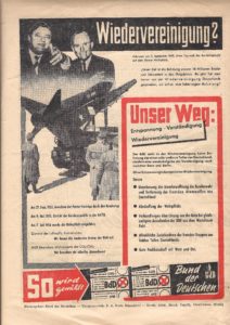 4-Seitiges Flugblatt „Wohin gegen wir?“ des Bundes der Deutschen“ (BdD) zur Bundestagswahl 1957.