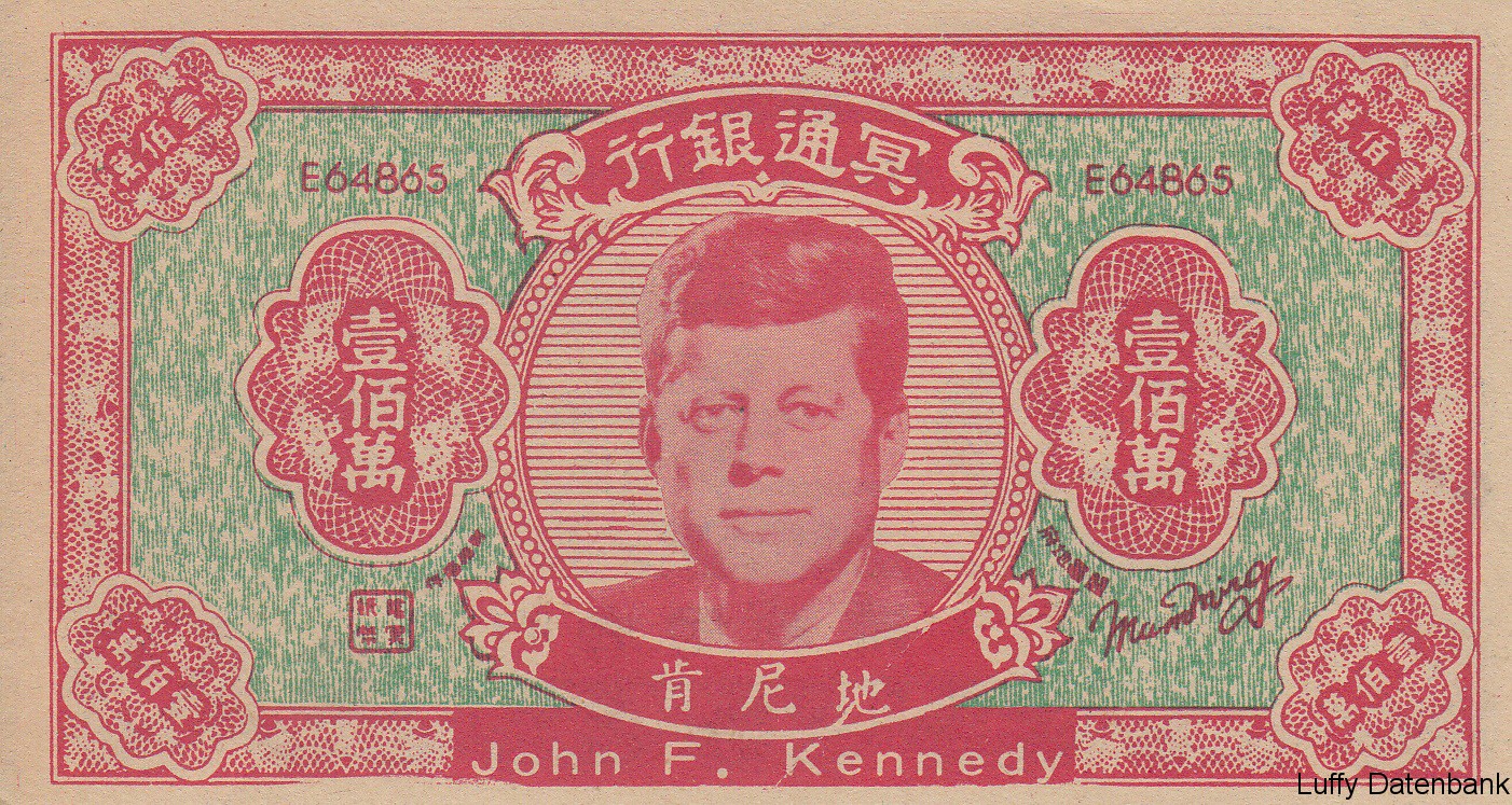 Alleine bei den hier abgebildeten Scheinen mit den Bildern von John F. Kennedy und Ho Chi Minh sind viele weitere Bildvarianten zu finden, so z.B. mit den Politikern Wilson, Eisenhower, Johnson, Khruschow und Stalin, den Schauspielern James Dean, Humphrey Bogart und Marilyn Monroe oder dem Wissenschaftler Albert Einstein.