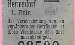 Marke über Getränkesteuer über 2 Reichspfennig aus der Gemeinde Hermsdorf in Thüringen. Vermultlich um 1940.