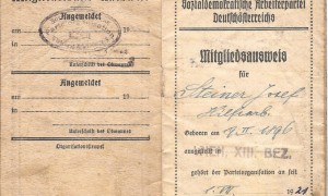 Mitgliedsbuch der „Deutschen sozialdemokratischen Arbeiterpartei in Deutschösterreich“ für die Jahre 1921 bis 1927. Das Buch gehörte dem in Wien lebenden Hilfsarbeiter Josef Steiner.