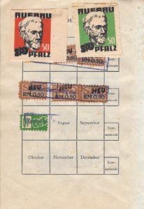 SPD-Mitgliedskarte von Frau Katharina Hauber aus Ludwigshafen (Bezirk Pfalz) für den Zeitraum Juli 1946 bis Juli 1949.