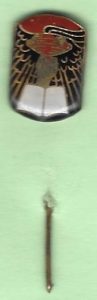 Nadel „Hand mit Fackel hinter Buch / vor Adler“. Ohne Datum. Machart und Logo erinnern an die Abzeichen der „Freidenker“.
