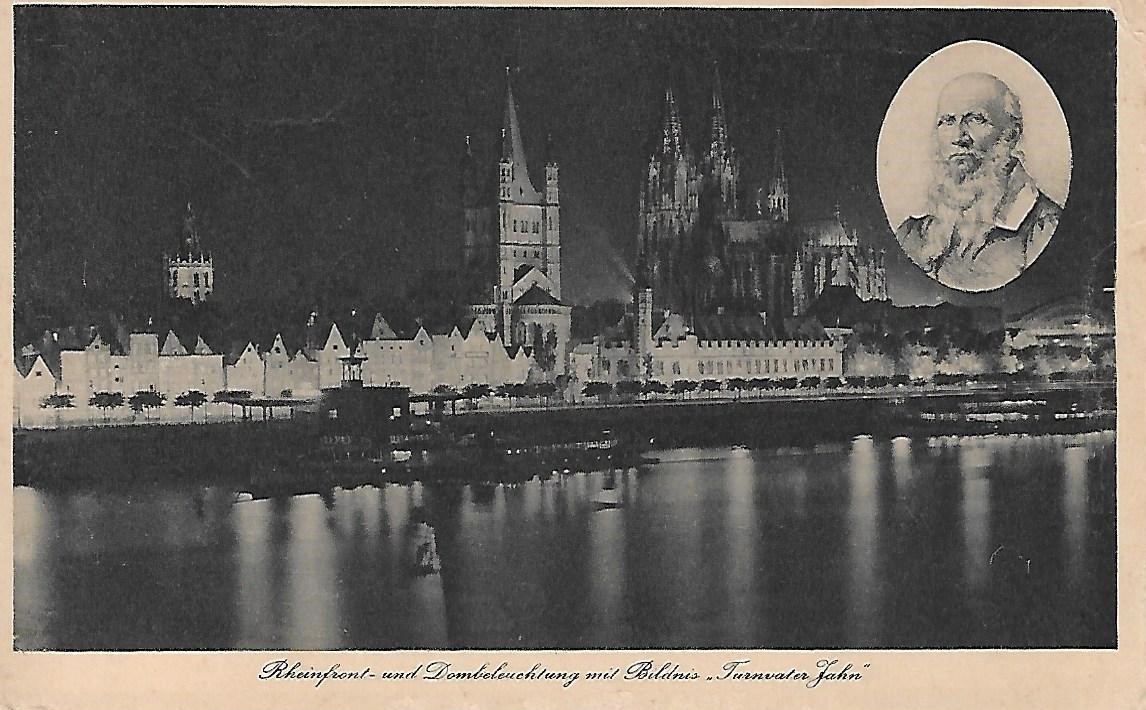 Postkarte „Gruß vom 14.Deutschen Turnfest Köln 1928“ mit dem Bildnis von „Turnvater Jahn“.