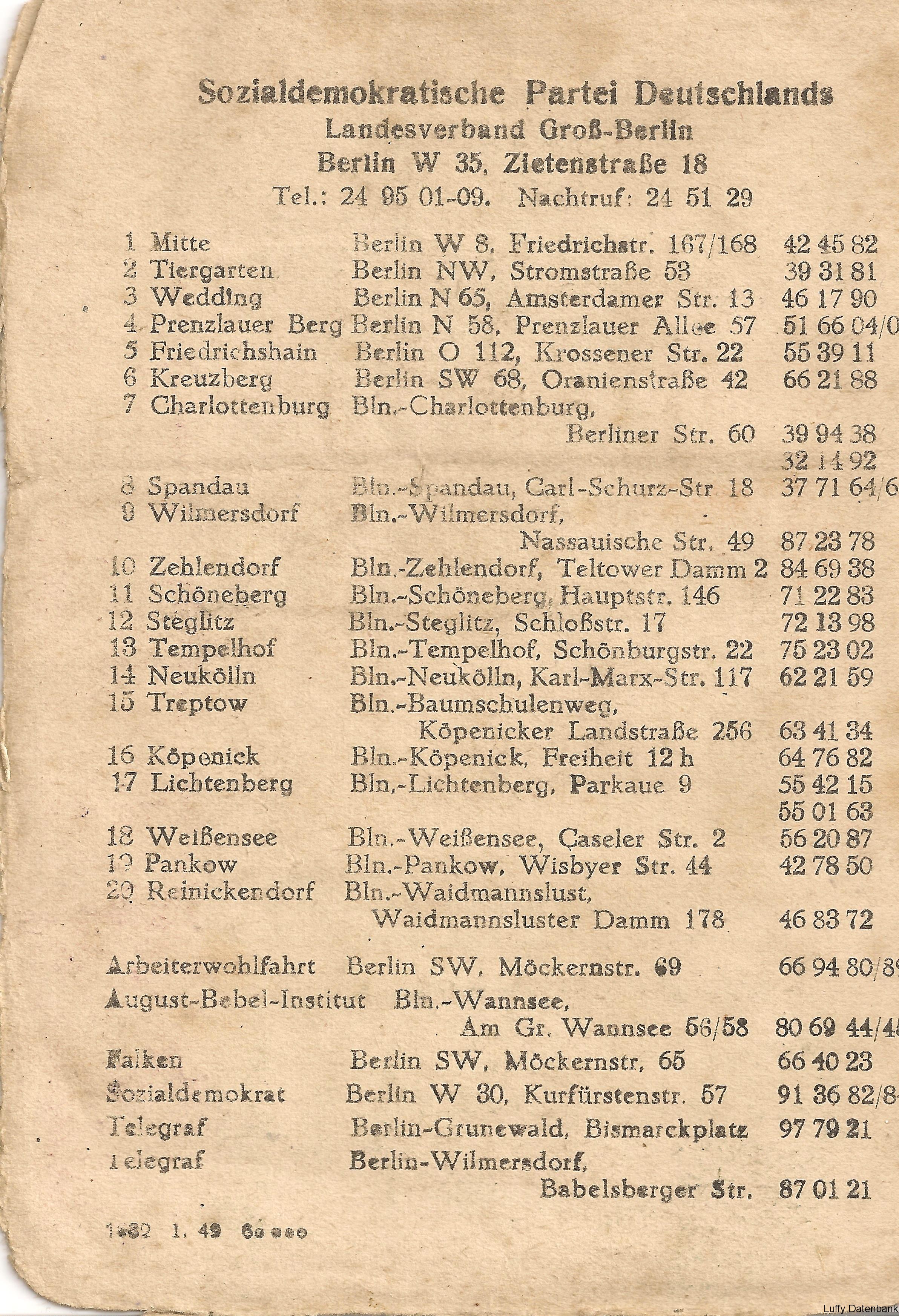 Mitgliedskarte und Einlegeblatt zur Mitgliedskarte 19/1037/46 aus dem Landesverband Groß-Berlin aus dem Jahre 1949.