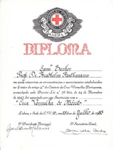 Urkunde des Vereins „Cruz Vermelha Portuguesa“ (Portugisische Rote Kreuz) an Friedhelm Farthmann (SPD) aus dem Jahre 1985.